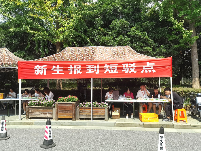 中午,大家聚在帐下匆匆用过简易的盒饭后又迅速投入了志愿工作中,临近一点,进校的新生越来越多,烈日下烘烤的温度不断上升,但大家的干劲丝毫不减,疲惫留在心里,但笑容始终挂在脸上,这是我们,这是材料学院金属所第一党支部,这更是浙江大学研究生们应有的精神面貌。