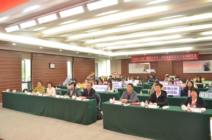 为深入学习贯彻党的二十大精神,进一步普及实验室安全知识、培养安全防范能力、强化实验人员安全意识、深化实验安全理念、降低实验室安全风险, 11月24日下午14点,“贯彻落实二十大,实验安全知信行”浙江大学第八届研究生实验室安全知识竞赛决赛在紫金港校区李摩西楼紫金港厅成功举行。浙江大学党委研究生工作部部长张荣祥,紫金港校区管委会主任吴子贵,实验室技术安全管理办公室主任金海萍,安全保卫处消防安全管理办公室主任顾冬健,材料学院党委副书记王育萍,材料学院实验室主管应窕,材料学院团委书记、研究生辅导员李由作为嘉宾和评委出席本次活动。活动由李佳雯、叶尔达那·叶尔肯别克同学主持。