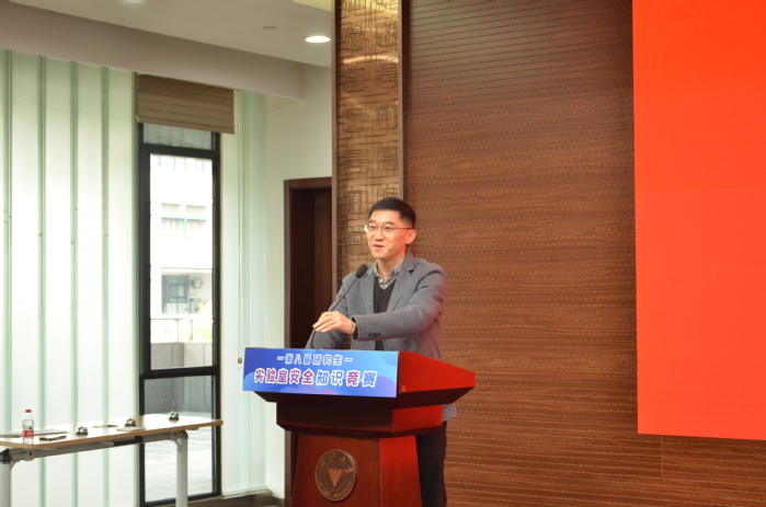 赛后,吴子贵老师为本次比赛进行了总结和点评,吴老师表示实验室安全是高校工作环节的重中之重,随后更是举了学校曾经发生过的实验室事故提醒同学们一定要吸取前人的经验教训,牢守实验室安全规范。吴老师言辞恳切、亲近自然,希望同学们能珍惜美丽的校园环境,牢守实验室安全防线。