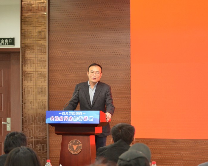 赛前,张荣祥老师为本次决赛致开幕辞。张老师表示,实验室安全知识竞赛已成功举办多年,材料学院一直高度重视,各学院同学广泛参与,已形成良好的品牌效应。张老师强调实验室安全是永恒的主题并提出以下四点:1、希望同学们能进一步牢固树立实验室安全意识;2、希望同学们能够扎实地掌握实验室的安全知识;3、希望大家能够认真地贯彻实验室的安全标准;4、希望同学们重视文化建设,积极营造实验室的安全文化。