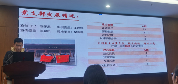 为深入学习贯彻党的二十大精神,增强基层党组织的政治功能和组织功能,2023年3月2日,材料学院2022年度学生党支部书记述职报告会在材2-215顺利召开。材料学院党委副书记、纪委书记王育萍、团委书记李由、专职组织员王海萍、辅导员包晨琛、学生党建工作指导中心成员、学生党支部书记、其他党员及学生群众代表等60余人参加了本次报告会。会议由材料学院学生党建工作指导中心成员王耀主持。