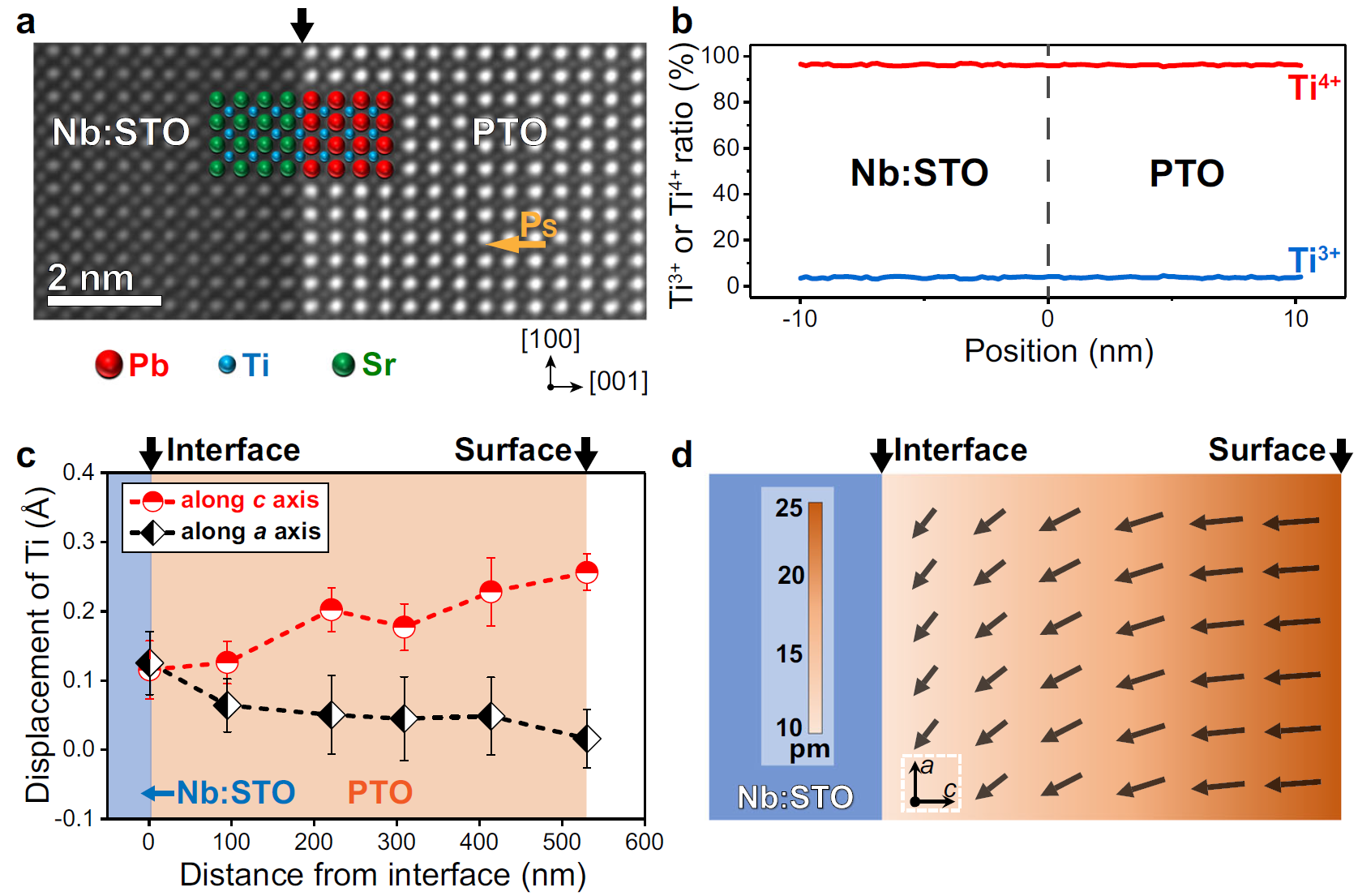 图3 PbTiO3薄膜的界面极化屏蔽和极化梯度结构
