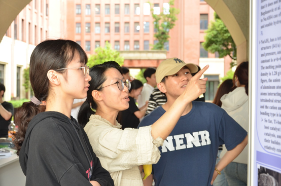 随后,活动进入自由讨论与展示环节。春雨淅沥不影响老师和同学们的热情。现场参展的研究生们向前来观摩的老师与同学们详细地介绍自己的学术成果,并就自己研究领域的问题与他们进行探讨,现场讨论声此起彼伏,交流热烈。