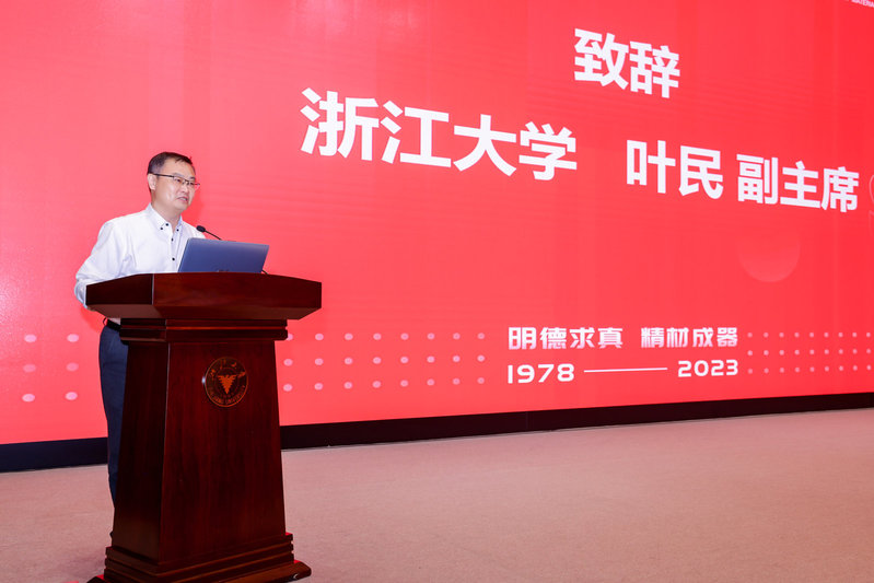 大会伊始,浙江大学原党委副书记、纪委书记、材料系毕业生叶民致辞。他热烈祝贺材料学院四十五华诞,作为一名浙江大学材料系毕业生,他为学院45年来取得的优异成绩感到骄傲与自豪,为学院坚实的发展基础和强劲的发展势头感到喜悦与高兴。叶民书记回想起在材料系读书的往事历历在目,自己所取得的每一步成绩离不开学院(系)的教育教养,从懵懂到有知,不断成长和进步,他衷心感谢学院(系)对自己这一代材料人的培养,并对材料学子提出期望,希望材料学院实现新飞跃,迈入新台阶。