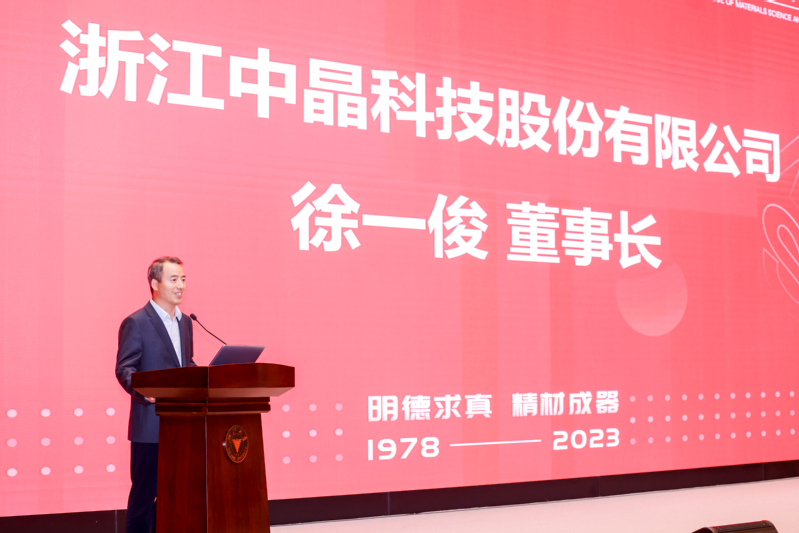 峥嵘岁月,华章溢彩。为感谢社会各界人士对材料学院的大力支持,大会进行了捐赠感谢授牌仪式。随后,浙江中晶股份有限公司徐一俊董事长、浙江大学创新技术研究院有限公司赵文宇总经理讲话。通过共同设立“精材毓秀”创新创业教育基金,培养优秀的科技成果转化人才,推进科技成果转化产业化。