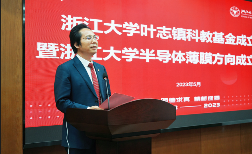 5月20日,浙江大学教育基金会叶志镇科教基金成立仪式暨浙江大学半导体薄膜方向成立35周年活动于浙江大学紫金港校区举行。浙江大学党委常委、副校长黄先海,中国科学院院士叶志镇,浙江双厚建设有限公司董事长陈候党、云南驰程工贸有限公司总经理叶怀书、浙江信仰诚矿业管理有限公司董事长林元仰,招远旭日矿山机械有限公司董事长吴加旭,威廉希尔WilliamHill官方网站院长朱铁军,材料科学与工程学院党委书记王晓燕,发展联络办公室主任、校友总会秘书长、教育基金会秘书长沈黎勇一同出席仪式。仪式由威廉希尔WilliamHill官方网站党委副书记王育萍主持。