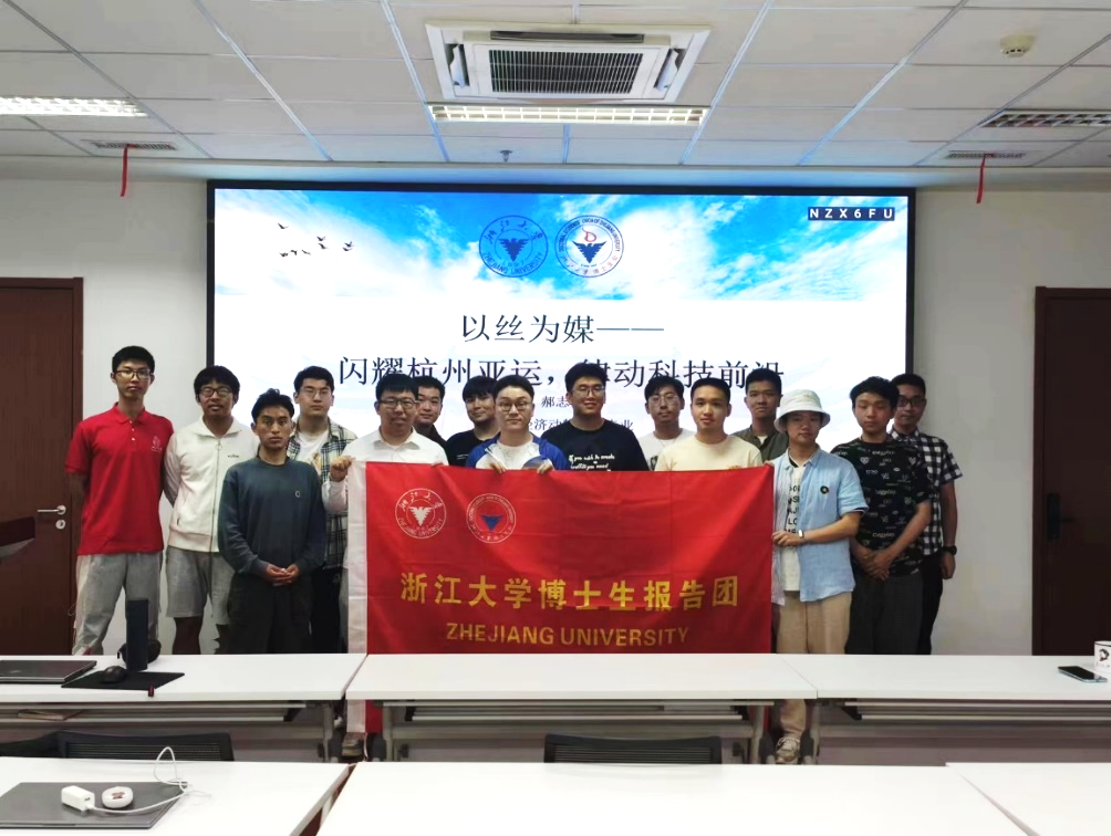 浙江大学博士生报告团讲师、动物科学学院特种经济动物饲养专业2019级博士生郝志华以《以丝为媒——闪耀杭州亚运,律动科技前沿》的宣讲。郝志华以丝绸为媒介,带领大家一同走进杭州亚运会中蚕丝交织的光辉,结合个人研究方向介绍丝绸古今发展,启迪台下青年一辈的党员同志们主动担当,扛起产业兴旺、乡村振兴、科技发展的责任,与中华文化一同璀璨。