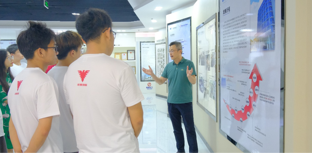 在结束厂房实际操作和设备的参观学习后,实践团与企业内的校友们开展了一次极具意义的校友座谈交流会。在校友交流会上,实践团成员积极向校友们提出了问题,如招聘过程中更看重学生哪些素质,黄总对此进行解答:招聘过程中公司以兴趣为导向,全方位,多方面考察应聘者。类似于因材施教,企业在任职过程中因材施任,让人才能各司其职,在自己最合适和最感兴趣的领域发光发热。之后各位校友们依次分享了他们在该企业的工作经历和职业发展路径。通过此次座谈会,实践团了解了实际工作中的要求和挑战,并且获取到了关于未来就业方向的建议。与校友面对面交流,极大地激发了实践团学生的积极性和动力。校友们的求职,在职经历是一个生动的榜样,激励实践团一行人更加努力地学习和追求自己的职业目标。