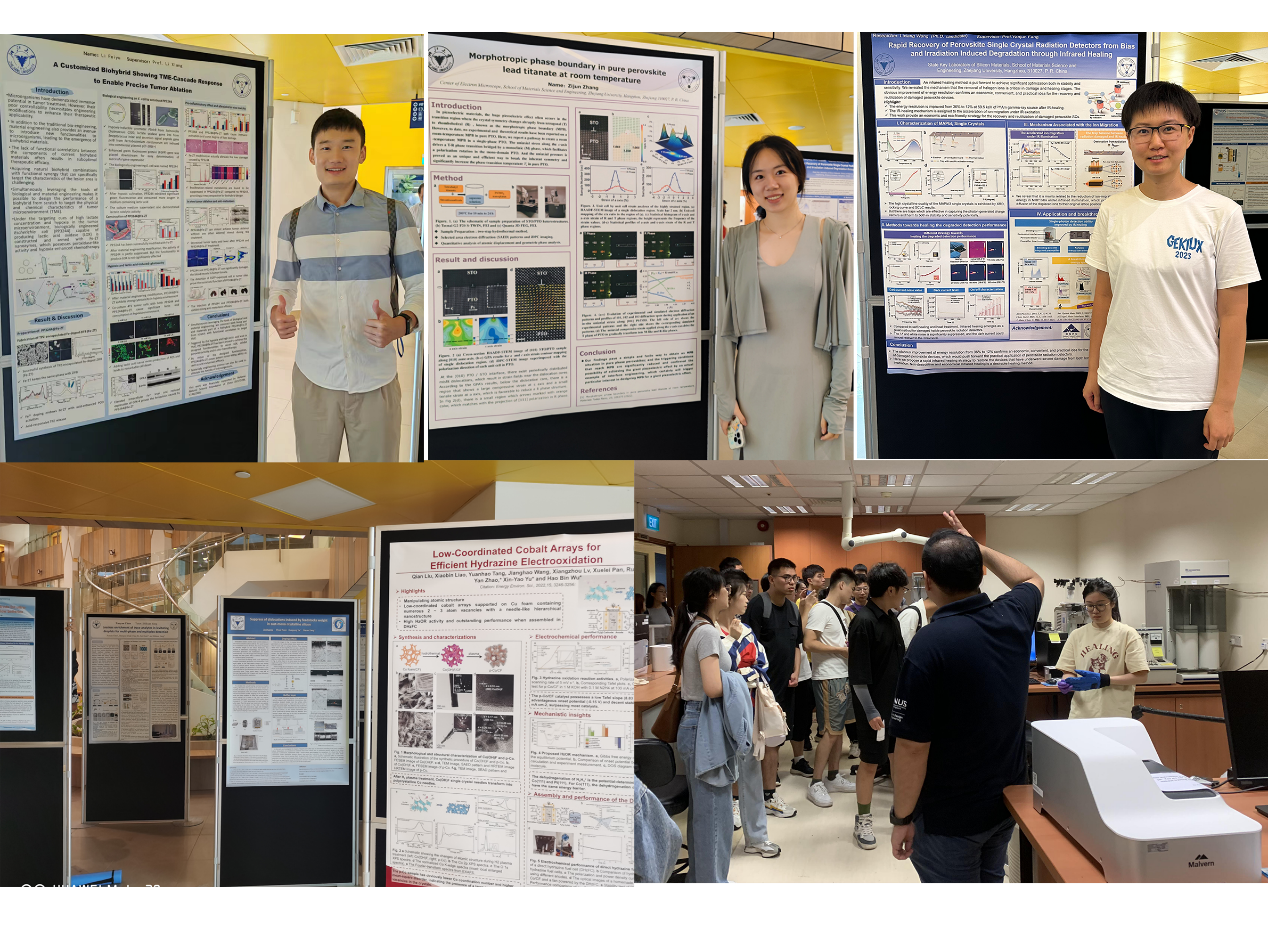 研讨会期间,两校18名博士生进行了学术墙报展示,内容涵盖电催化材料、二次电池材料、储氢材料、光伏半导体材料、生物医药材料、二维非晶碳材料等多个研究领域。博士生的研究成果引起现场多名师生的浓厚兴趣,双方展开了热切的互动交流。此外,访学团还参观了新国大材料系的公共实验平台,包括通用合成实验室、化学性质表征实验室和物理性质表征实验室,学习了解关于X射线衍射仪、X射线光电子能谱仪、红外光谱、透射电镜等大型仪器的运作管理模式。