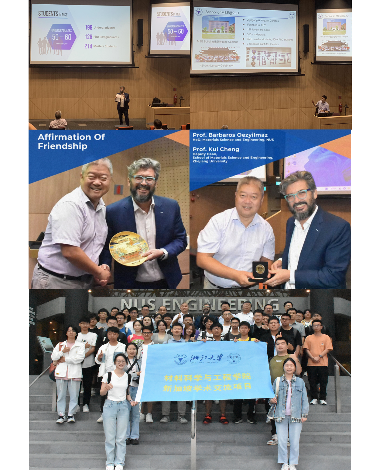 为开拓学生的国际化视野,提升材料学科领域的学术前沿水平,浙江大学材料学院2023年暑期赴新加坡知名高校学术交流项目于8月28日至31日顺利开展。由程逵副院长、吴浩斌副院长、刘永锋教授、姜银珠教授、付晨光研究员、薛晶晶研究员和邓天琪研究员7位教师带队,10名博士生和5名本科生组成访学团,前往新加坡国立大学和南洋理工大学两所国际知名高校,进行为期4天的学术交流。新加坡国立大学和南洋理工大学在2023年QS世界大学榜中分列第11和19,其材料学科在该榜位列第3和第7,学术实力享誉全球。浙江大学材料学院与两所高校在科学研究与人才培养上长期保持友好合作关系。