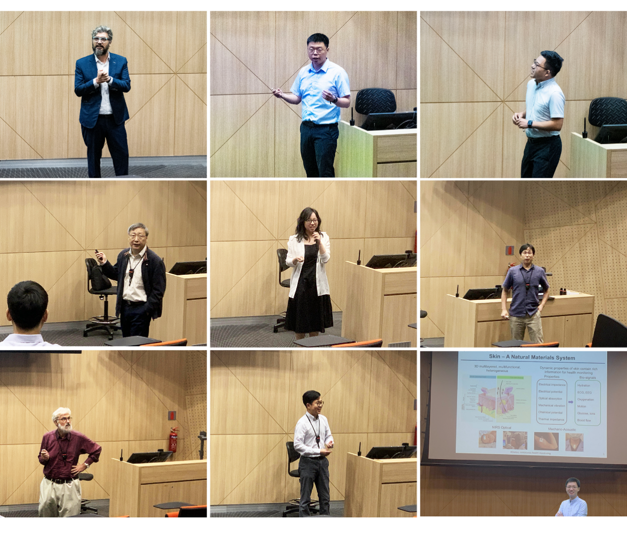 研讨会上,来自两校的9位材料领域专家学者依次作学术报告。吴浩斌副院长介绍了基于金属-有机框架材料的锂金属电池电解质和界面相的相关研究,探讨了金属有机框架对电解液局部化学环境、离子传输的调节作用。Barbaros教授介绍了关于二维非晶材料的研究成果,讨论了单层非晶碳的合成、性质及其在铁磁性超导材料和超低介电常数介电材料方面的应用。付晨光研究员介绍了重带热电材料的声子结构与传播方面的研究,提出异价掺杂剂在调节半导体声子结构和抑制声子传播中的作用机制。John Wang教授介绍了多步骤能量转换的电催化剂的相关工作,讨论了电催化剂的尺寸缩减趋势和单原子催化剂的机理及应用。薛晶晶研究员阐述了卤化物钙钛矿材料的晶格软化对光伏半导体器件性能的影响;Qing Wang教授讲述了氧化还原调控的电化学在碳中和能源器件的应用;Stefan Adams教授介绍了超薄复合电解质与固态电池相关的研究;邓天琪研究员揭示了半导体材料中的载流子散射机制;Changsheng Wu教授展示了用于深层组织监测的无线、皮肤接口光学和机械声传感器研究。与会的两校师生踊跃提问,与报告者积极交流,形成了热烈的学术探讨氛围,受益颇多。