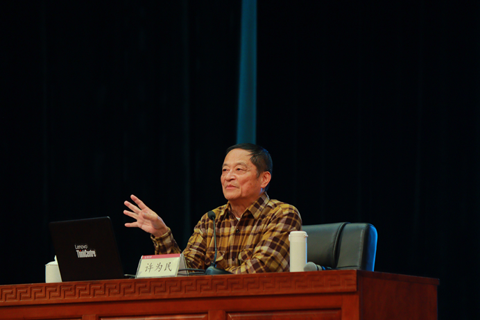 随后,哲学学院教授许为民老师作专题报告《新时代:坚持以求是精神学科学》。许老师以求是精神的楷模竺可桢先生为例,为我们阐述了求是精神的真正内涵,早在哈佛念书时,竺可桢就以研究中国科学史为己任;回国后致力教书、创办中央研究院气象研究所和主持浙江大学。他的科学史研究引领着中国,影响了世界。正是他一生的执着追求,才有今天中国科学史研究的繁荣景象;正是因为竺可桢老校长带领浙江大学西迁,浙大火种才得以保留,薪火相传。接下来,许老师从北京大学和清华大学两所高校的差异出发,探讨了科学与人文的关系,强调科学与人文应该共融才能更好的弘扬求是精神。讲座的最后,许老师对同学们寄予了殷切的希冀,他鼓励同学们在学好专业知识的同时,应当注重培养自己的科学和人文精神,打造特长和人格并存的核心竞争力,用求是精神筑就人生的基石。