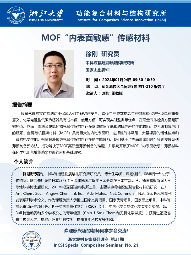 学术报告202401-关于中科院福建物构所徐刚研究员学术报告的通知