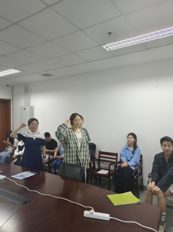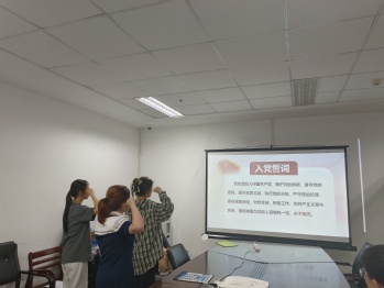 随后由入党介绍人介绍情况,两位同志在积极分子期间,一心向党组织靠拢,多次提出进一步发展的请求。思想上积极学习党的相关方针路线政策,学习上刻苦努力,积极进取,生活中团结他人,帮助同学。两位同志思想上,学习上,政治上,生活中,都十分优秀,满足了发展党员的要求。此外,两位同志满足党章中发展党员的基本流程要求,并完成相关培训。经党支部支委会议讨论决定,允许王雨辰和童慧敏同志,发展为预备党员,并提交党员大会投票表决。投票表决结果为正式党员17人均同意王雨辰和童慧敏同志发展为预备党员。最后由纪检委员胡炜媛带领王雨辰和童慧敏同志宣读入党誓词。