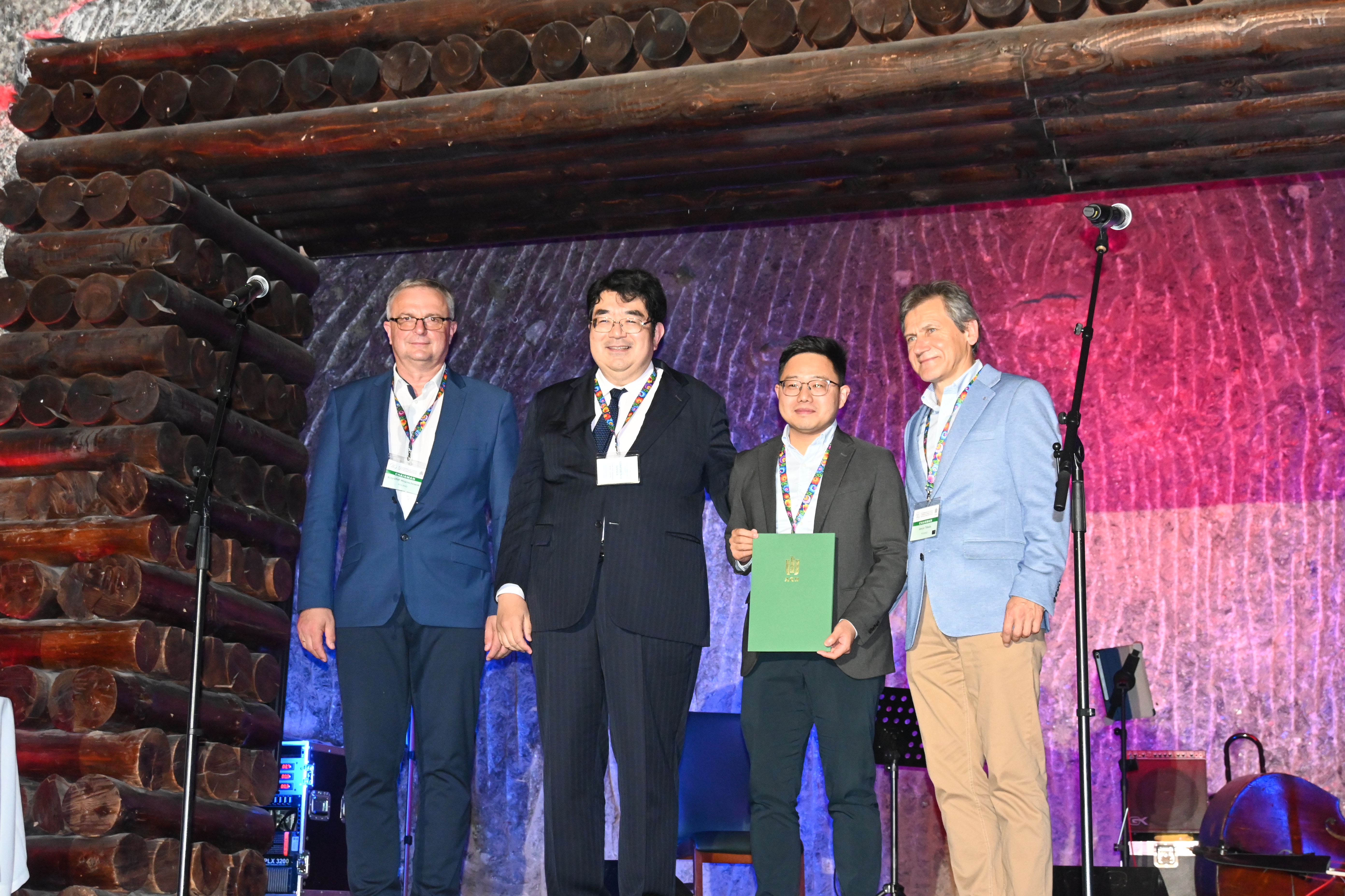 国际热电学会主席Takao Mori教授(左二)和2024国际热电大会主席Krzysztof Wojciechowski教授(左一)、Janusz Tobola教授(右一)为付晨光颁发“The 2024 Young Investigator Award”