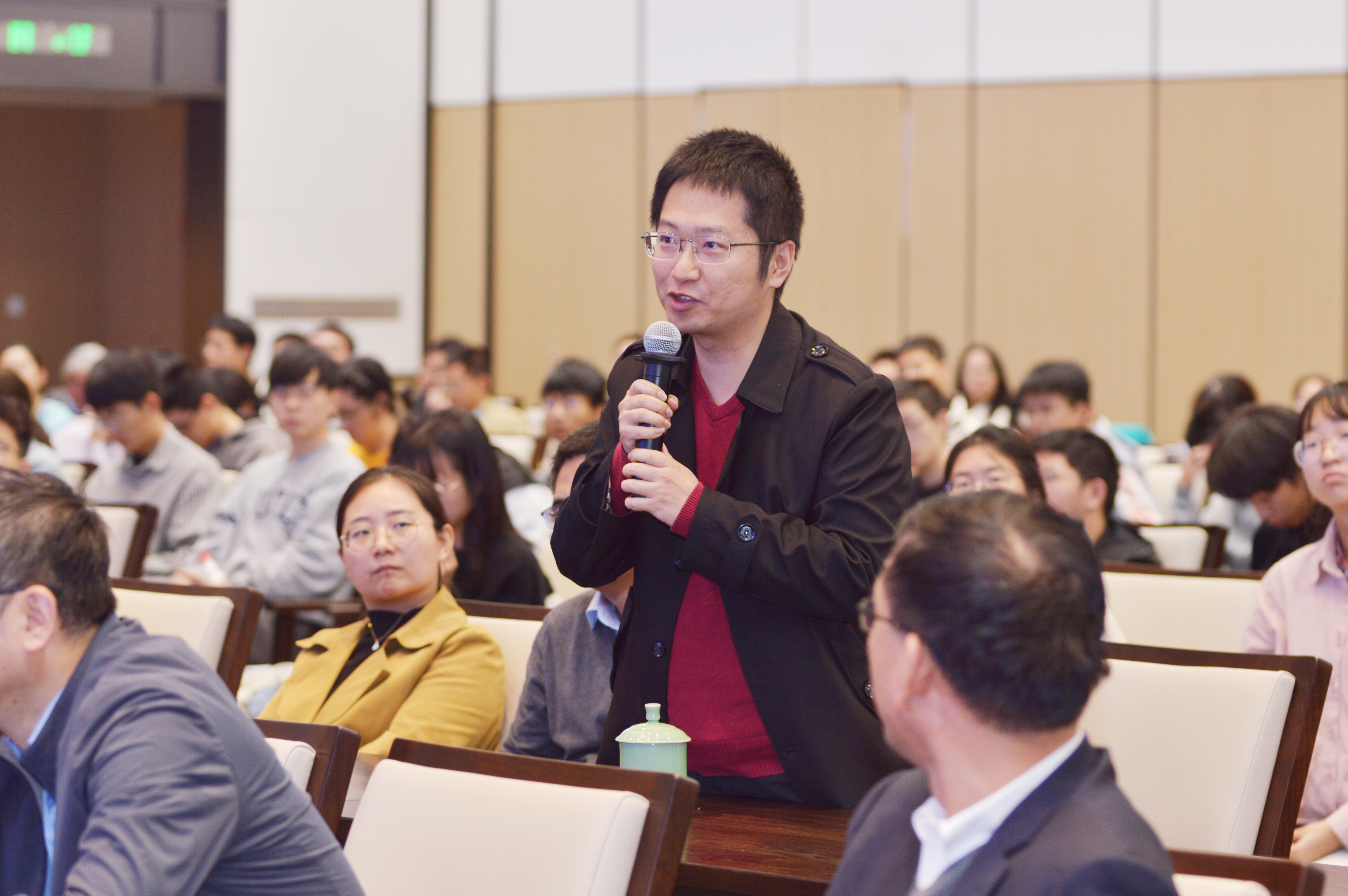 在报告会的互动环节,求是学子们针对邹志刚院士的讲座内容,结合自身的成长经历和研究课题踊跃提问,与邹院士进行了深入的交流和讨论。针对模拟月壤实验的问题,有师生提出模拟月壤和真实月壤差别有可能是缺少助催化剂的猜想,邹院士对此进行了详细的解答和讨论。此外,还有师生就青年学者投身宇宙探索和地外生存研究的渠道与途径、聚合物的太空应用、地外生物垃圾和废弃物的处理策略和循环利用等问题向邹院士请教,邹院士都一一给予了耐心细致的解答,令与会师生收获良多。