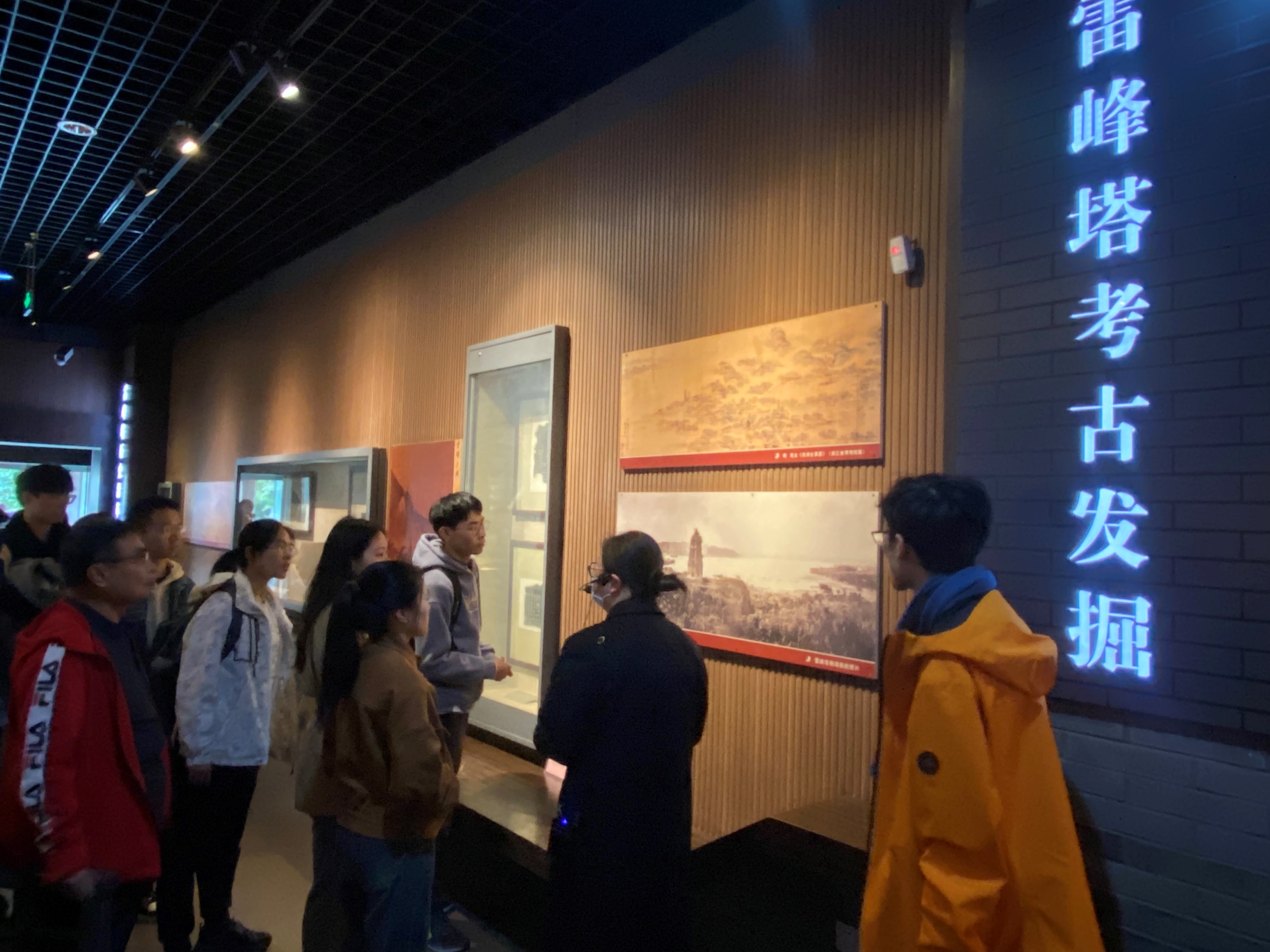第一站,同志们来到浙江省博物馆孤山馆区。浙江省博物馆孤山馆区位于杭州西湖孤山南麓,东衔白堤,西接西泠印社,是浙博两大主馆区之一,以雷峰塔文物、陶瓷、漆器为常设陈列,皇家藏书楼文澜阁坐落其中,自然和人文景致得天独厚。习近平总书记曾在2006年来到文澜阁修缮工程现场,召开座谈会强调现代化进程中文化遗产保护的重要性。在讲解员的带领下,同志们穿越时空,看到了千年前吴越国杰出的建塔工艺,它和一件件文物一起,展现着中华民族的智慧。在文澜阁,同志们认识了许多历代藏书抄书人,深刻感受到其中承载的孜孜以求的人文精神。清出雅致的皇家建筑群,见证着民族文化。同志们在文物中追溯历史,在展品中汲取文化力量,进一步认识到中华文化博大精深、源远流长的独特魅力。