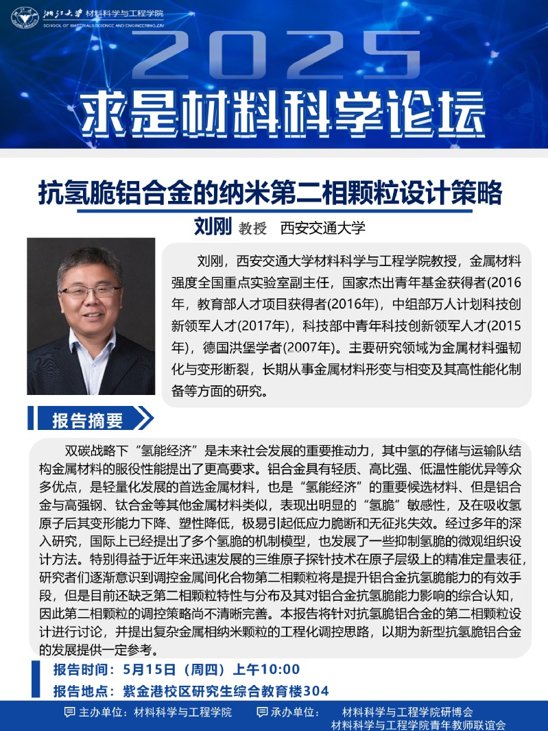 【求是材料科学论坛】2025年3期:关于西安交通大学刘刚教授报告会的通知