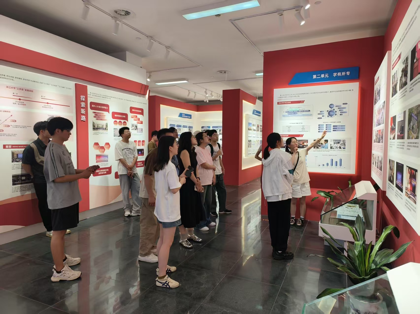 64日下午,支部全体成员前往党建馆进行“爱国荣校”专题学习。在讲解员的生动讲述下,同学们深入了解了党的光辉历史以及浙江大学在党的领导下取得的卓越成就。从红船启航的伟大征程到浙大师生在科研、教学、社会服务等领域的杰出贡献,每一个故事都深深打动着同学们的心。大家驻足在一幅幅珍贵的历史图片和文献资料前,认真倾听,仔细思考,深刻领悟到作为新时代青年所肩负的责任与使命。