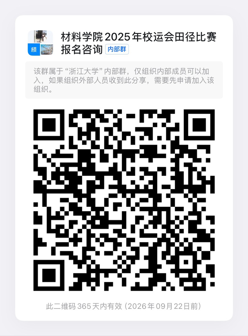 其他未尽事宜,请加入钉钉群聊:材料学院2025年校运会田径比赛报名咨询。