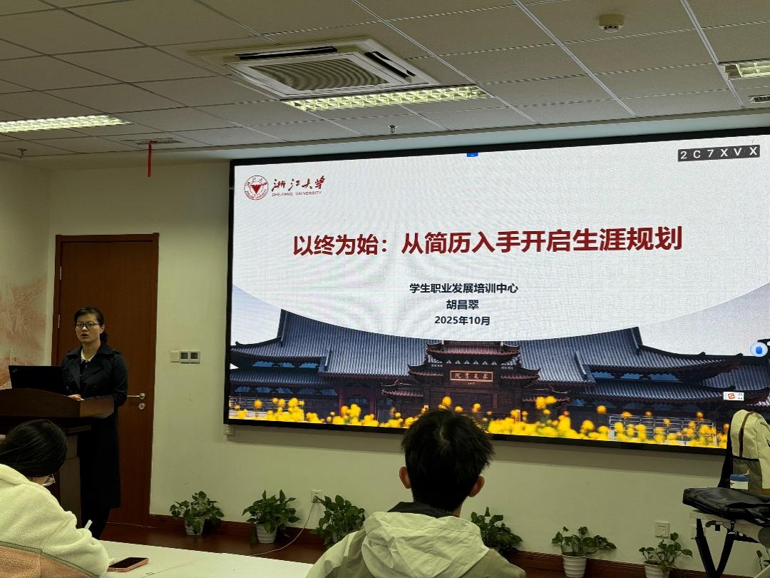 2025年10月30日上午,英国·威廉希尔(williamhill)唯一中文官方网站“以终为始:从简历入手开启生涯规划”活动在材1-210成功举办。本次活动邀请浙江大学就业指导与服务中心胡昌翠老师讲解,会议由材料科学与工程学院辅导员陈蕾老师主持。
