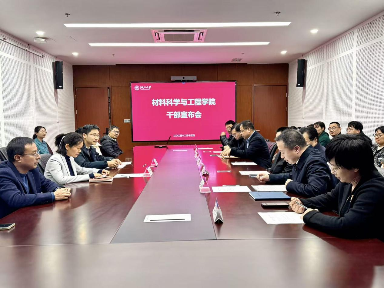 1215日下午,材料科学与工程学院干部宣布会在紫金港校区和同苑召开。党委组织部副部长夏雷宣读任命文件并讲话,学院党委书记黄任群主持会议。