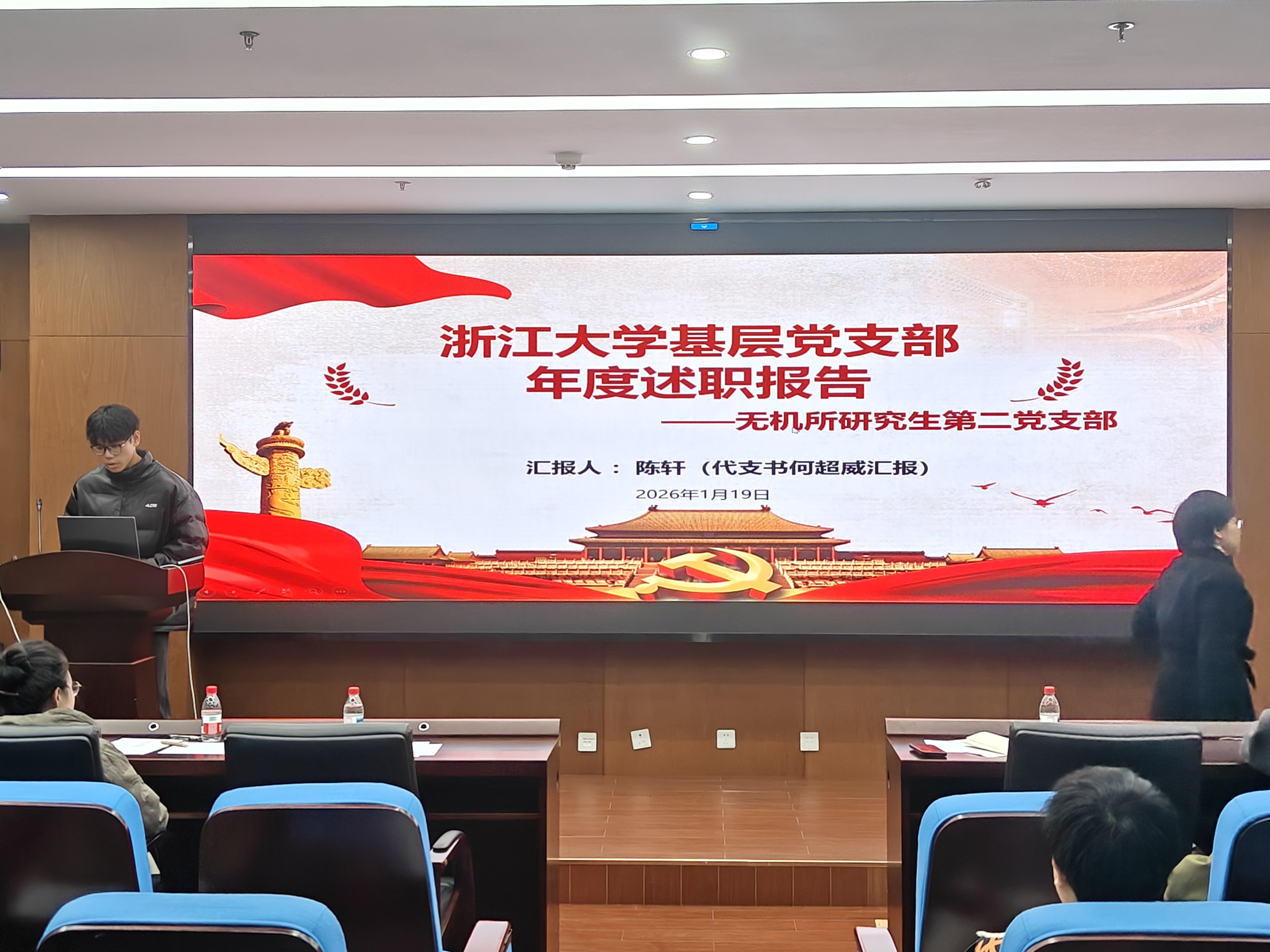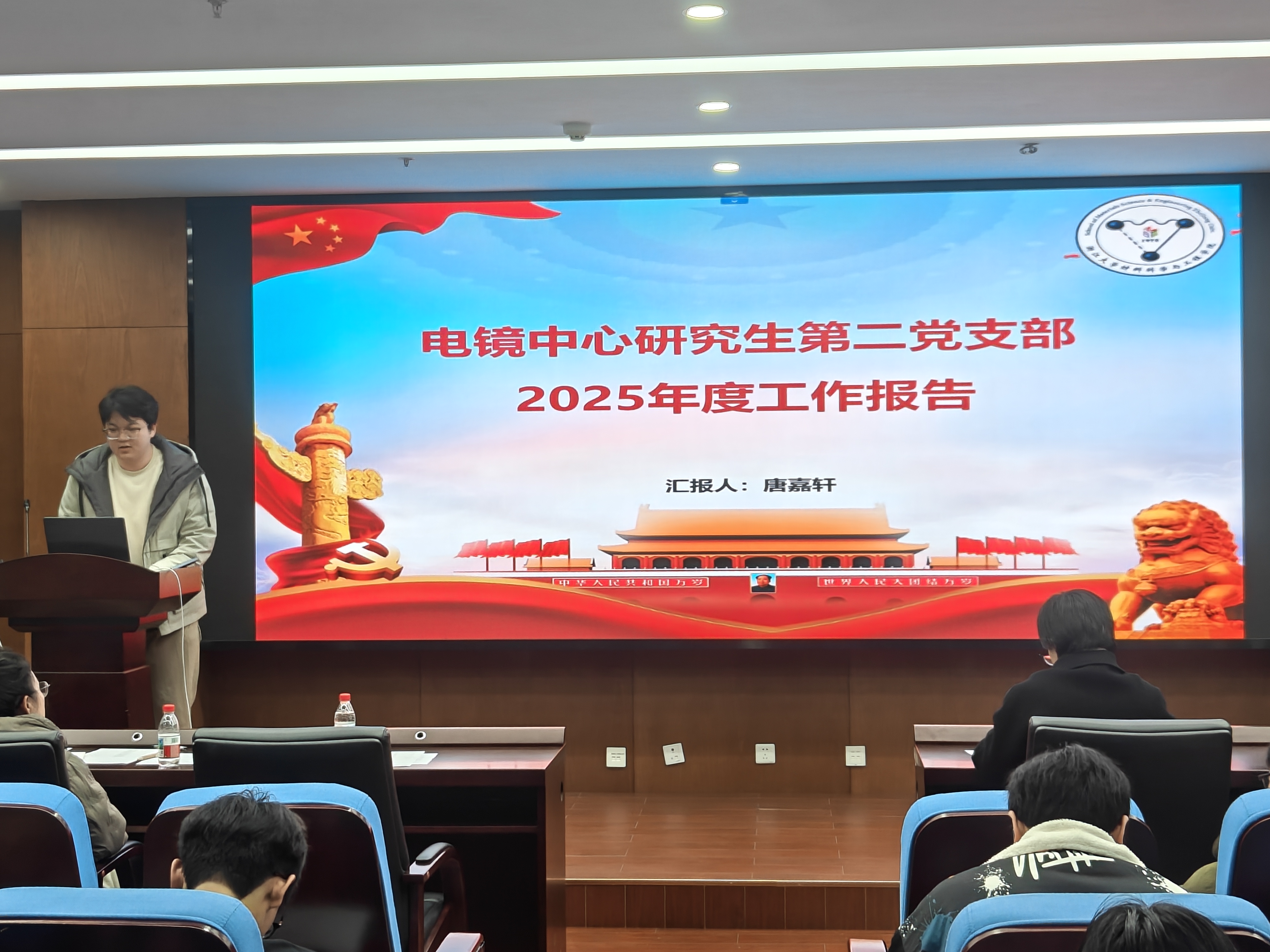 为深入学习贯彻习近平新时代中国特色社会主义思想,贯彻落实党的二十届四中全会精神,落实学校第十五次党代会决策部署,持续强化基层党组织政治功能和组织功能,系统总结2025年度学生党建工作成效,全面提升学生党建工作规范化、特色化水平。2026年1月19日,材料学院2025年度学生党支部书记述职报告会在材2-215顺利召开。学院党委书记黄任群、党委副书记兼纪委书记王育萍、团委书记李由、辅导员翟子颀、学生党建工作指导中心成员、全体学生党支部书记及党员、学生群众代表等60余人参加会议。
