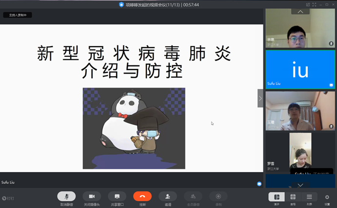 The second part of the symposium was the concentrated study of guidelines for epidemic prevention and control. Liu Sufu from the Institute of Metals, based on the Guidelines for the Prevention and Control of Novel Coronavirus Pneumonia for Overseas Students issued by the Ministry of Education, and from the knowledge of novel coronavirus pneumonia, personal protection guidelines for overseas students, diagnosis and treatment of novel coronavirus pneumonia, During the epidemic, the mental health guidelines for overseas students studying abroad further emphasized the students, and shared and reminded them from the perspective of their own experiences.