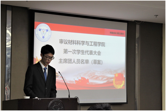 At the beginning of the preparatory meeting, the delegates listened to the work report of the Preparatory Committee of the first student congress of the College of materials science and engineering, and successively deliberated and passed the report (Draft) of the qualification examination group of the first student congress of the College of materials science and engineering, the list of presidium members (Draft), the list of Secretary General of the Student Union (Draft), and the meeting Agenda (Draft).